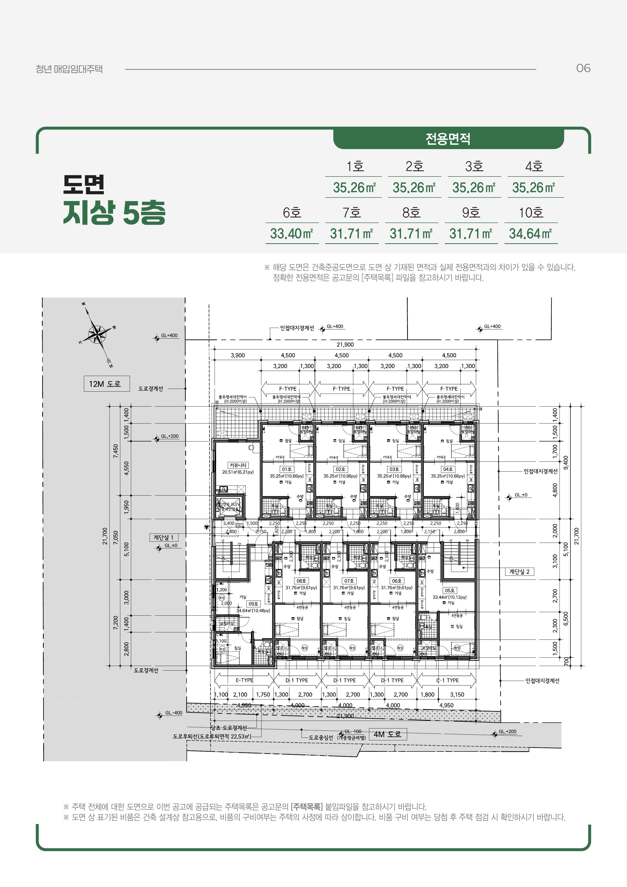 | 최상층 타입 | 5층 | 35.26㎡(1~4호), 33.40㎡, 31.71㎡(다수), 34.64㎡ | 최상층은 소음 장점이 있지만 방수/단열/하자 체크가 필수예요. |